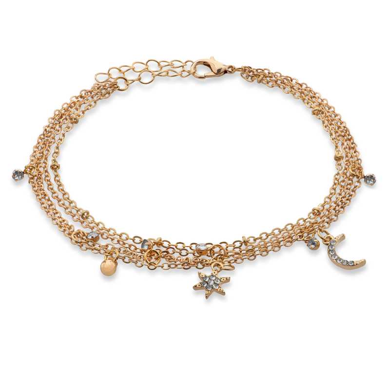 Slušivý pozlacený řetízek na nohu od značky Troli představuje dokonalý doplněk pro každou ženu, která chce zvýraznit svou eleganci a styl. Tento šperk, vyrobený z obecného kovu a pozlacený žlutým zlatem, je ozdoben dekoračními přívěsky ve tvaru měsíce a hvězdy, které jsou osazeny čirými krystaly. Délka řetízku činí 21 cm a je možné ji prodloužit až o 5 cm, což zajišťuje pohodlné nošení. Zapínání na karabinku přidává na praktičnosti. Tento jemný a elegantní řetízek se skvěle hodí pro každou příležitost, ať už se chystáte na večírek nebo si užíváte běžný den. Ozdobte své nohy tímto stylovým šperkem a nechte se okouzlit jeho jedinečným designem. Dodává se v originálním balení, což z něj činí ideální dárek.