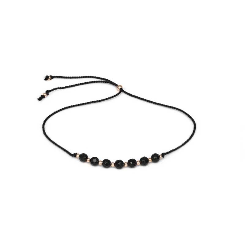 Šňůrkový náramek na nohu s korálky z onyxu od značky Agato spojuje eleganci s hloubkou symboliky. Černá hedvábná šňůrka, ozdobená vybroušenými korálky z onyxu a pozlacenou ocelí, vytváří harmonický kontrast, který vkusně zvýrazní váš kotník. Tento šperk je nejen módním doplňkem, ale také nositelem síly a sebedůvěry, kterou onyx symbolizuje. Jeho energii oceníte v náročných chvílích, kdy pomáhá udržet klid a vyrovnanost. Délka náramku je snadno přizpůsobitelná až na 30 cm, což zaručuje pohodlí a dokonalé uchycení. Vybírejte kvalitu a styl s Agato, značkou známou svou precizností a originálním designem.
