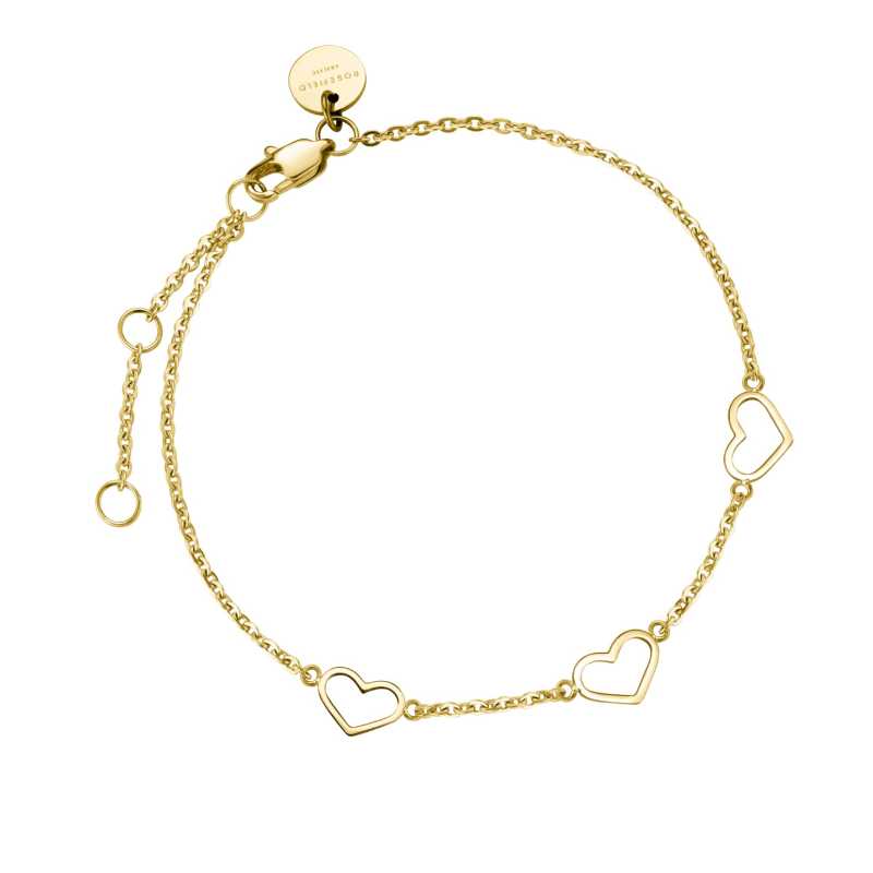 Něžný pozlacený náramek se srdíčky od značky Rosefield je ideálním doplňkem pro každou ženu, která touží po elegantním a stylovém šperku. Tento náramek, vyrobený z kvalitní oceli a pozlacený 14k žlutým zlatem, přináší do vašeho šatníku nádech luxusu. S rafinovanými ozdobami ve tvaru srdce se stává skvělým symbolem přátelství nebo lásky. Nastavitelná délka 16, 5 cm s možností prodloužení o 3 cm zajistí dokonalé padnutí na každé zápěstí. Tento nadčasový kousek je dodáván v originálním balení, což z něj činí skvělý dárek pro vaše blízké. Objevte krásu jednoduchosti a elegance s tímto výjimečným náramkem.