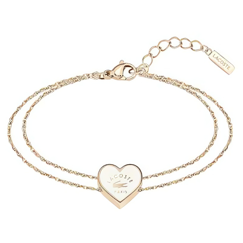 Růžově zlacený náramek Srdíčko od značky Lacoste je elegantním šperkem, který v sobě spojuje styl a symboliku lásky. Je vyroben z kvalitní oceli a opatřen PVD povlakem, který mu dodává atraktivní lesk a odolnost. Dvojité řetízkové provedení s něžnou ozdobou ve tvaru srdce, zdobené smaltem a ikonickým krokodýlem, zajišťuje unikátní vzhled, který osloví každou ženu. Tento náramek je nejen módním doplňkem, ale i výrazem přátelství a vzájemné náklonnosti. S délkou 19 cm a možností prodloužení je ideálním dárkem pro každou příležitost.