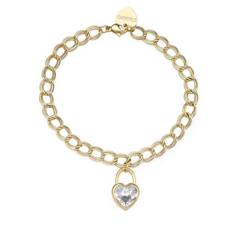 Výrazný pozlacený náramek se srdíčkem My Love SYL28 od italské značky S'Agapõ je dokonalým spojením elegance a symboliky. Vyrobený z kvalitní oceli a potažený zlatým PVD, náramek oslní svým třpytivým přívěskem ve tvaru srdce, symbolem lásky a přátelství. Délka 19, 5 cm a praktické zapínání na karabinku zajišťují pohodlné nošení. Tento šperk nejen ozdobí vaše zápěstí, ale také vyjádří vaše city a hodnoty. Skvěle se hodí jako dárek pro blízkou osobu, která ocení kvalitu a design. Originální balení dodává náramku exkluzivní nádech.