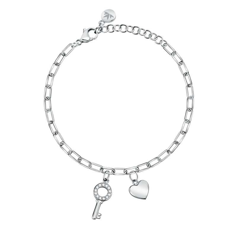 Originální ocelový náramek s přívěsky Passioni SAUN16 z dílny italské značky Morellato představuje spojení elegance a kvality. Vyroben z prvotřídní oceli, vyniká svou odolností a dlouhou životností. Povrchová úprava v lesku dodává šperku jemný a sofistikovaný vzhled. Ozdobený hravými přívěsky ve tvaru klíče a srdce, náramek zaujme také třpytivými krystaly, které podtrhují jeho jedinečný design. Pro jeho dlouhou životnost doporučujeme vyhýbat se kontaktu s vodou a chemikáliemi. Kvalita značky Morellato a pečlivý výběr materiálů zaručují, že tento šperk bude skvělým módním doplňkem pro každou příležitost.