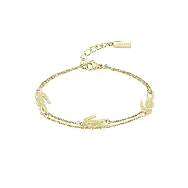 Dvojitý pozlacený náramek od značky Lacoste je ideálním doplňkem pro každou ženu, která hledá styl a eleganci. Vyrobený z kvalitní oceli a pokovený zlatou PVD úpravou, zaručuje dlouhou životnost a lesk. Jeho unikátní dvojité provedení s ikonickým krokodýlem upoutá pozornost a dodá každému outfitu šmrnc. S délkou 19 cm a možností prodloužení o 2, 5 cm se dokonale přizpůsobí vaší ruce. Zapínání na karabinku zajišťuje snadné nasazení a pohodlné nošení. Tento náramek je více než jen šperk; je to projev vaší osobnosti a vkusu. Dodává se v originálním balení, ideálním jako dárek.