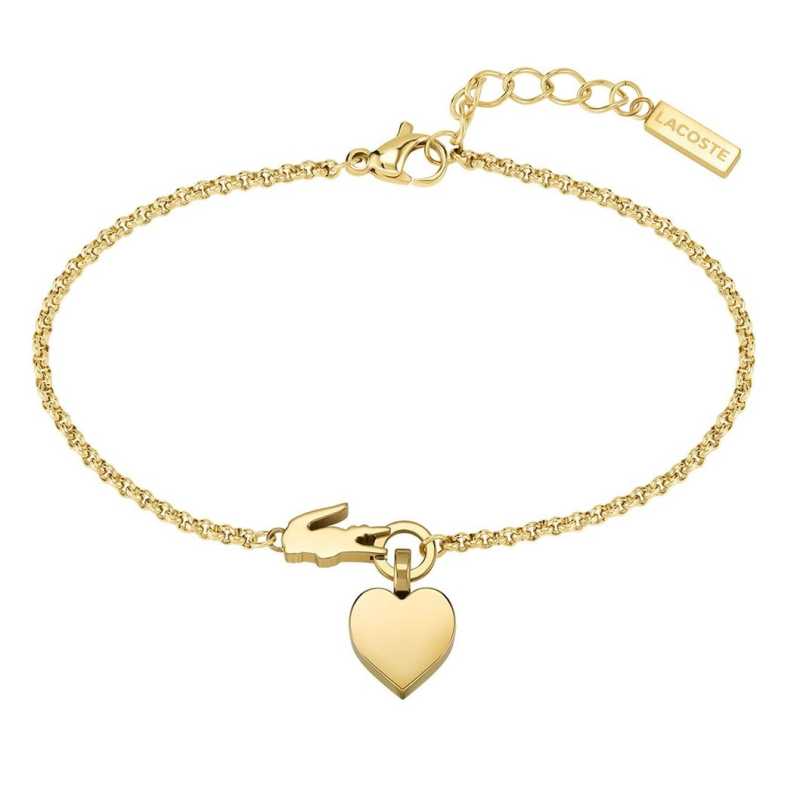 Něžný pozlacený náramek Love My Croc od značky Lacoste spojuje eleganci s hravým designem. Z kvalitní oceli s elegantním zlatým PVD povlakem, náramek zdobí originální přívěsek ve tvaru krokodýla, který symbolizuje sílu a odhodlání, zatímco srdíčkový přívěsek představuje lásku a náklonnost. Délka náramku 16, 5 cm, s možností prodloužení, zajišťuje pohodlné nošení. Zapínání na karabinku zaručuje snadnou manipulaci. Dodávaný v originálním balení, tento šperk je ideálním dárkem pro každou ženu, která ocení kvalitní a stylové doplňky. Ozdobte své zápěstí tímto výjimečným kouskem, který podtrhuje vaši osobnost.
