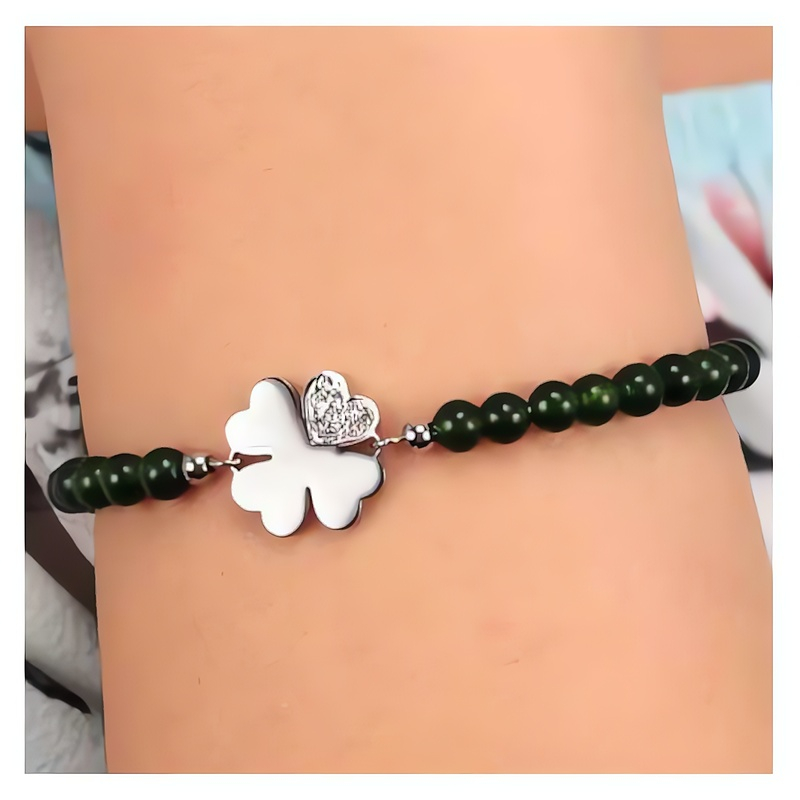 Ocelový náramek Čtyřlístek Valentina od italské značky Morellato spojuje kvalitu a jedinečný design. Vyrobený z odolné ušlechtilé oceli, je potažen vrstvou rhodia pro zvýšení lesku a ochranu proti poškrábání. Zelené korálky z achátu a třpytivé krystaly dodávají šperku nádech elegance a štěstí. Pro zachování krásy doporučujeme náramek chránit před kontaktem s vodou a agresivními chemikáliemi. Údržbu usnadní měkký hadřík na jemné čištění. Tento náramek, nejen že skvěle doladí váš outfit, ale i potěší jako dárek pro blízké.