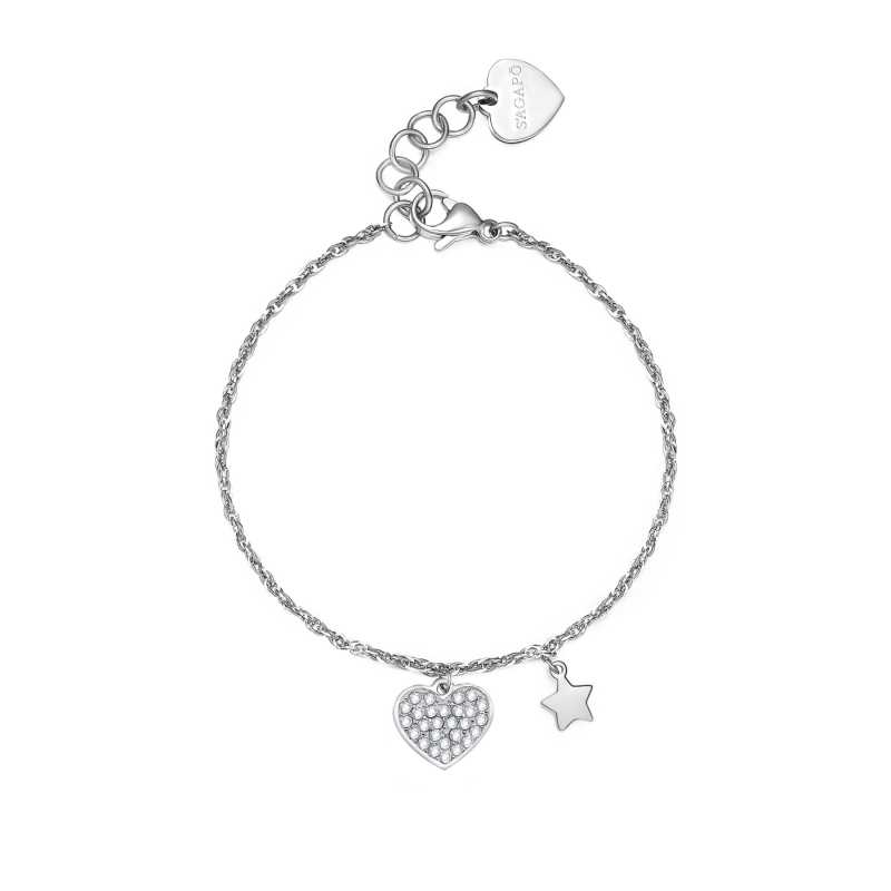 Tento elegantní ocelový náramek s přívěsky od značky S'Agapõ je dokonalým doplňkem pro každou ženu, která si potrpí na styl a kvalitu. Srdíčko a hvězdička, zdobené třpytivým krystalem, symbolizují lásku a naději, čímž dodávají šperku osobní nádech. Délka náramku 18, 5 cm je ideální pro pohodlné nošení, zatímco lesklý povrch z kvalitní oceli zajišťuje dlouhou životnost. Tento šperk je dodáván v originálním balení, což ho činí ideálním dárkem pro vaše blízké. Ozdobte své zápěstí náramkem, který nejen že vypadá skvěle, ale také vyjadřuje důležité hodnoty.