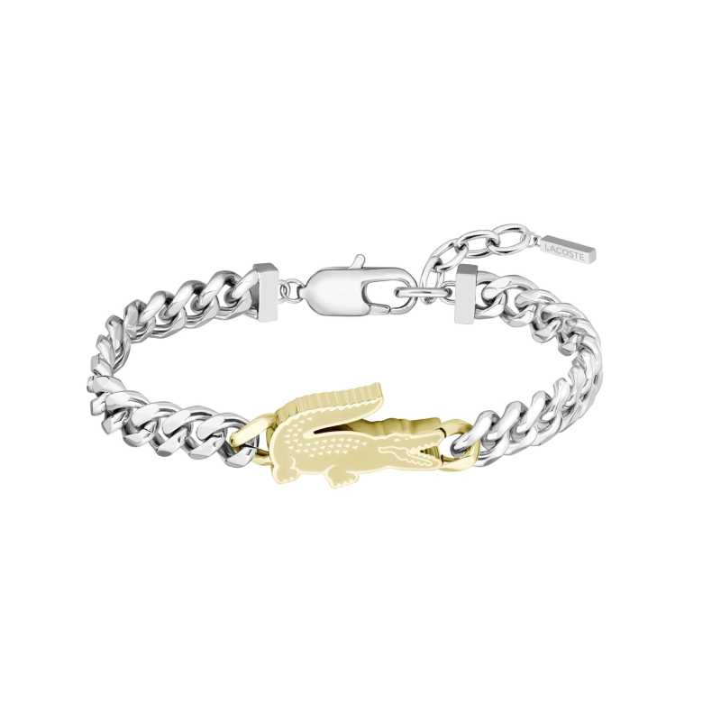 Pánský bicolor náramek Arthor 2040552 od značky Lacoste spojuje nadčasový design s moderním stylem. Vyrobený z kvalitní oceli, jeho výrazná ozdoba ve tvaru ikonického krokodýla s pozlaceným PVD povlakem přitahuje pozornost a vyjadřuje sebevědomí. Délka 19 cm a praktické zapínání na karabinku zaručují pohodlné nošení. Tento šperk symbolizuje spojení elegance a síly, což z něj činí ideální doplněk pro muže, kteří chtějí vyčnívat. Náramek je dodáván v originálním balení, takže se skvěle hodí i jako dárek. Vsaďte na kvalitu a styl s tímto výjimečným kouskem.