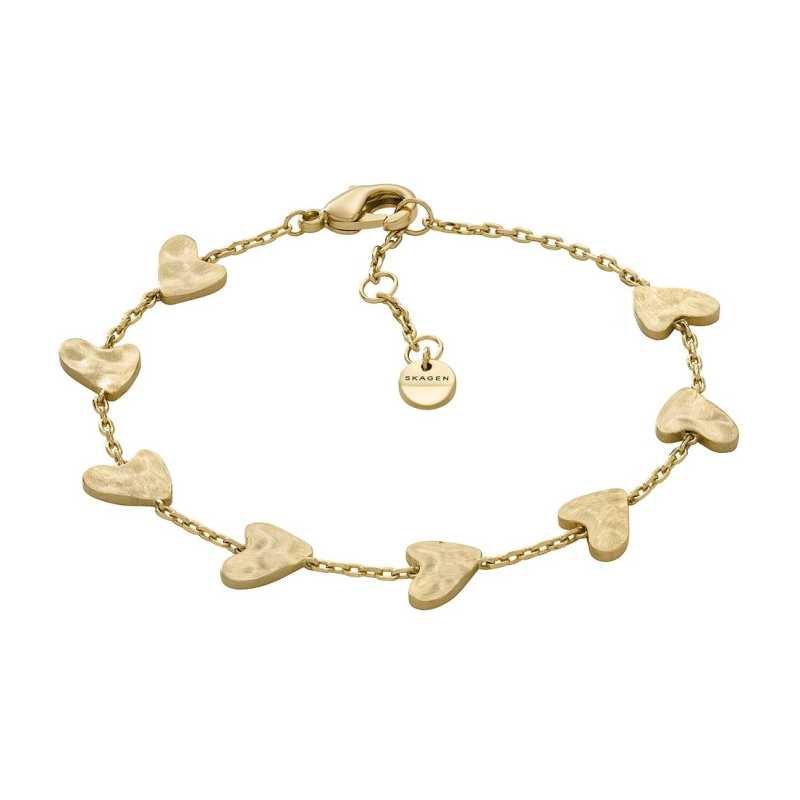 Pozlacený srdíčkový náramek Anja Hearts od značky Skagen je ztělesněním elegance a kvality. Tento šperk je vyroben z mosazi a pokovený zlatým PVD povlakem, který zajišťuje odolnost proti poškrábání a ztrátě barvy. Srdíčkové ozdoby o rozměru 0, 8 cm dodávají náramku romantický nádech. Aby si náramek udržel svou krásu, doporučuje se vyhýbat kontaktu s vodou a chemikáliemi. Originální balení posiluje hodnotu výrobku, který pochází od renomované značky s důrazem na detail a kvalitu. Tento náramek je nejen módním doplňkem, ale i trvalým symbolem vaší osobnosti.