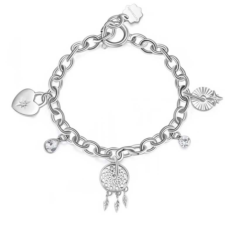 Elegantní náramek z kvalitní nerezové oceli od značky Brosway přináší do vašeho šperkového arzenálu jedinečnost s nádechem mystiky. Délka 18, 5 cm zaručuje pohodlné nošení, zatímco zapínání na masivní očko nabízí spolehlivost a bezpečnost. Přívěsky v podobě lapače snů, visacího zámku ve tvaru srdce a hvězdičky, doplněné čirými krystaly, vytvářejí fascinující harmonii, která okouzlí každého. Tento náramek je ideální volbou pro ženy, které chtějí vyjádřit svou osobnost a styl. V originálním balení se stává skvělým dárkem pro každou příležitost. Ozdobte své zápěstí tímto výjimečným šperkem, který zaručeně upoutá pozornost.