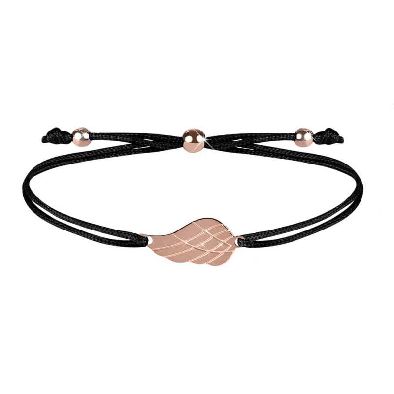 Šňůrkový náramek s andělským křídlem od značky Troli spojuje kvalitní materiály s moderním designem. Dvojitá nylonová šňůrka v elegantní černé barvě je odolná a příjemná na nošení, zatímco ozdoba ve tvaru andělského křídla je vyrobena z kvalitní oceli s růžovým pozlacením, které dodává šperku luxusní vzhled. Povrchová úprava v lesku zajišťuje dlouhotrvající krásu a ochranu proti opotřebení. Pro zachování jeho vzhledu se doporučuje náramek chránit před vodou a chemikáliemi. Tento šperk, dodávaný v originálním balení, je ideální pro každou příležitost a dokáže skvěle doplnit další šňůrkové náramky.