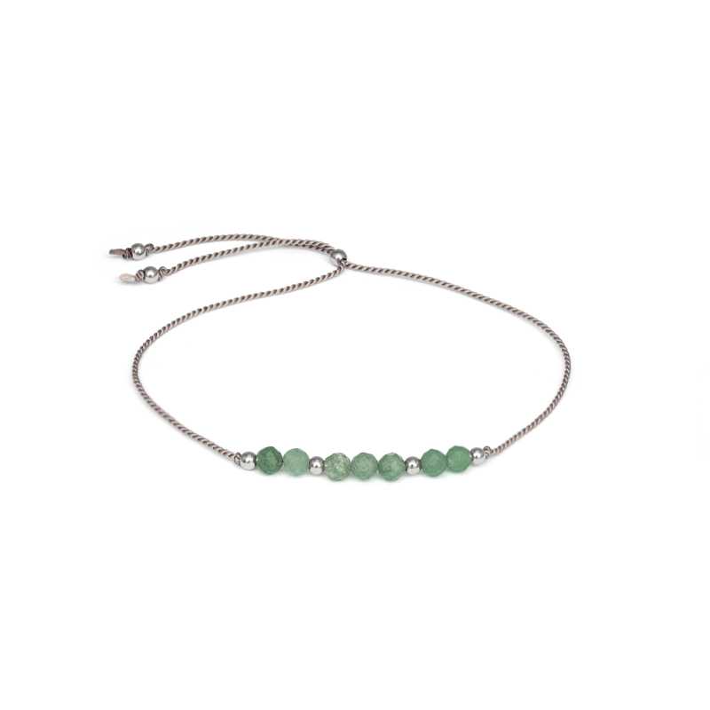 Elegantní šňůrkový náramek s avanturínem od značky Agato je dokonalým doplňkem pro každou ženu, která chce podtrhnout svou osobnost. Šedá hedvábná šňůrka, na které jsou navlečeny jemné korálky z vybroušeného avanturínu a oceli, dodává šperku lehkost a sofistikovanost. Délku náramku lze snadno přizpůsobit až na 27 cm pomocí praktické posuvné spony, což zajišťuje maximální komfort nošení. Avanturín, známý jako „kámen prosperity“, přináší do života štěstí, harmonii a vnitřní klid. Tento šperk nejenže zvýrazní vaše zápěstí, ale také posílí vaši odvahu a sebevědomí. Dodává se v originálním balení, ideální jako dárek.