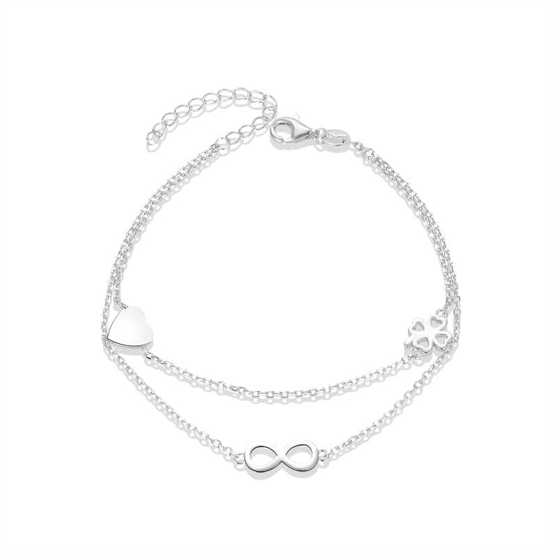 Náramek AGB636/21 od značky Beneto je synonymem kvality a elegance. Vyrobený ze stříbra 925/1000, nabízí trvanlivost a odolnost, zatímco rhodiovaná povrchová úprava zajišťuje dlouhotrvající lesk a snižuje riziko alergických reakcí. Dvojité provedení s motivy nekonečna, srdíčka a čtyřlístku pro štěstí je nejen stylové, ale také symbolické. Aby náramek udržel svou krásu, doporučuje se vyhýbat kontaktu s vodou a chemikáliemi a pravidelně ho otírat jemným hadříkem. Beneto, značka s tradicí, garantuje prvotřídní zpracování a jedinečný design.