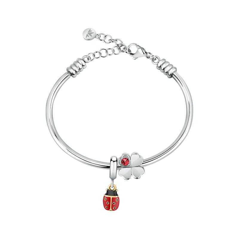 Stylový ocelový náramek Drops SCZ1280 od značky Morellato přináší do vašeho šperkového arzenálu jedinečnou kombinaci elegance a symboliky. Tento náramek, vyrobený z kvalitní oceli, je zdobený drobnými motivy čtyřlístku a berušky, oba vysoce ceněné symboly štěstí. Čtyřlístek je doplněn třpytivým červeným krystalem, zatímco beruška získala na kráse díky červenému a černému smaltu. Tento šperk můžete snadno přizpůsobit dalším přívěskům z kolekce Morellato Drops, což umožňuje vytvořit osobitý kousek, který vás dokonale vystihne. Náramek je dodáván v originálním balení, což z něj činí ideální dárek. Vybavte se šperkem, který nejen zdobí, ale také přináší štěstí.