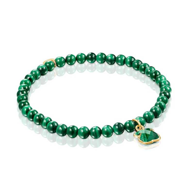 Korálkový náramek s malachitem od značky TOUS je ztělesněním elegance a kvality. Složení ze stříbra 925/1000 a korálků z malachitu dodává šperku jedinečný vzhled. Povrchová úprava z 18karátového žlutého zlata zajišťuje nejen atraktivní lesk, ale také ochranu proti poškrábání a ztrátě barvy. Pro zachování krásy náramku se doporučuje vyhnout se kontaktu s vodou a chemikáliemi, stejně jako pravidelně otírat jemným hadříkem. Tento šperk, zdobený ikonickým přívěskem ve tvaru medvídka, je dokladem precizního řemeslného zpracování a vysoké kvality materiálů, které TOUS používá. Náramek je dodáván v originálním balení, což z něj činí ideální dárek.