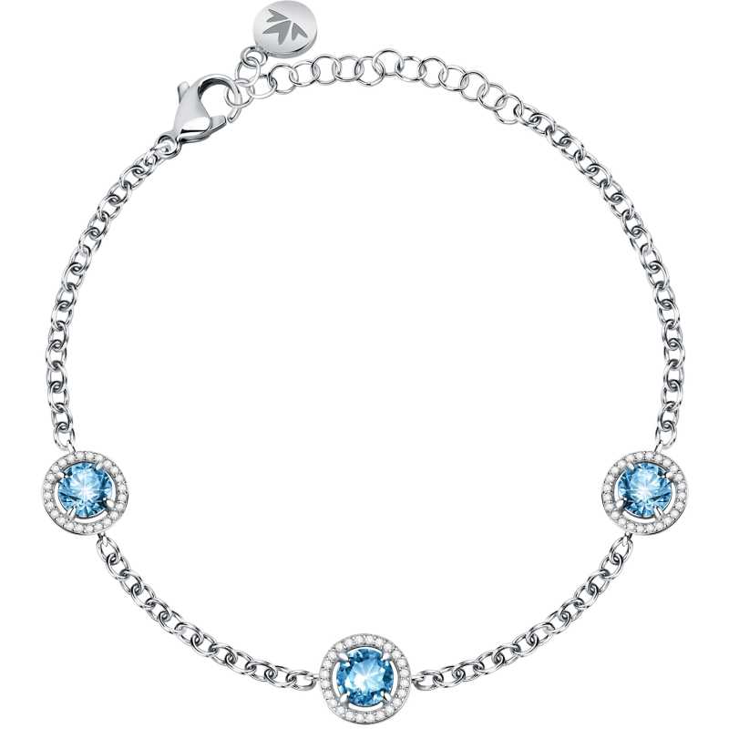 Třpytivý stříbrný náramek s krystaly Tesori od značky Morellato je dokonalým doplňkem pro každou ženu, která si potrpí na eleganci a jemnost. Vyroben z kvalitního stříbra s rhodiovanou úpravou, náramek se vyznačuje nejen dlouhou životností, ale i minimalizací alergických reakcí. Krásné modré zirkony, obklopené třpytivými čirými krystaly, dodávají šperku jedinečný lesk. Délka náramku činí 16 cm, s možností prodloužení o 3 cm pro maximální pohodlí. Klasické zapínání na karabinku zajišťuje bezpečné nošení. Tento šperk rozzáří vaše zápěstí a je ideální volbou pro každou příležitost.