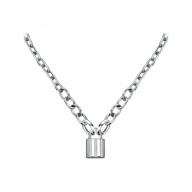 Luxusní ocelový náhrdelník Abbraccio SAUB01 od značky Morellato přináší jedinečný styl a eleganci, kterou oceníte při každé příležitosti. Je vyrobený z kvalitní oceli a pozlacený žlutým zlatem, což zaručuje jeho dlouhou životnost a odolnost. Dominantou náhrdelníku je přívěsek ve tvaru visacího zámku, který dodává šperku osobitý charakter. Délka náhrdelníku je 45 cm s možností zkrácení až o 5 cm, což umožňuje dokonalé přizpůsobení. Zapínání na klasickou karabinku zaručuje bezpečné nošení. Tento nadčasový kousek se skvěle hodí jako módní doplněk, který rozzáří váš dekolt a podtrhne vaši osobnost.