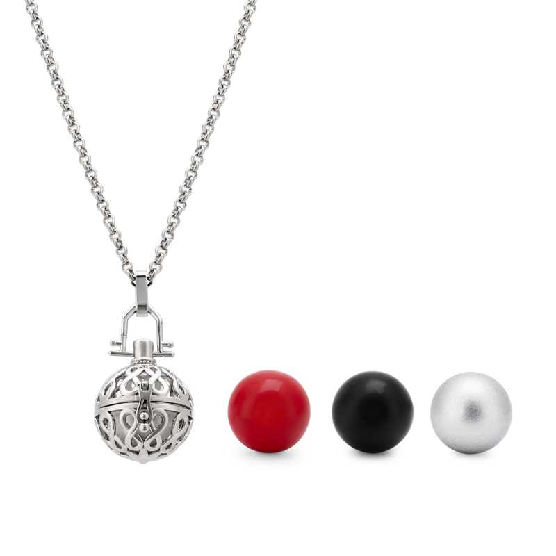 Multifunkční ocelový náhrdelník s rolničkami od značky Troli je elegantním doplňkem pro každou ženu. Je vyroben z bižuterního kovu se stříbrnou povrchovou úpravou a zdoben klíckou se symbolem nekonečna. Klícka je snadno otevřitelná, což umožňuje vyměnit rolničku dle nálady – bílá, červená, stříbrná či černá barva přidávají na variabilitě. Délka řetízku činí 70 cm, což zaručuje pohodlné nošení. Tento náhrdelník není pouze módním doplňkem, ale také symbolem mateřství a klidu, jehož zvuky mohou uklidnit miminko již během těhotenství. Po narození lze šperk zavěsit na kočárek nebo nad postýlku. Nosí se skvěle i mimo těhotenství, když rolničku vyjmete a využijete jej jako stylový kousek. Dodává se v originálním balení, ideální jako dárek.