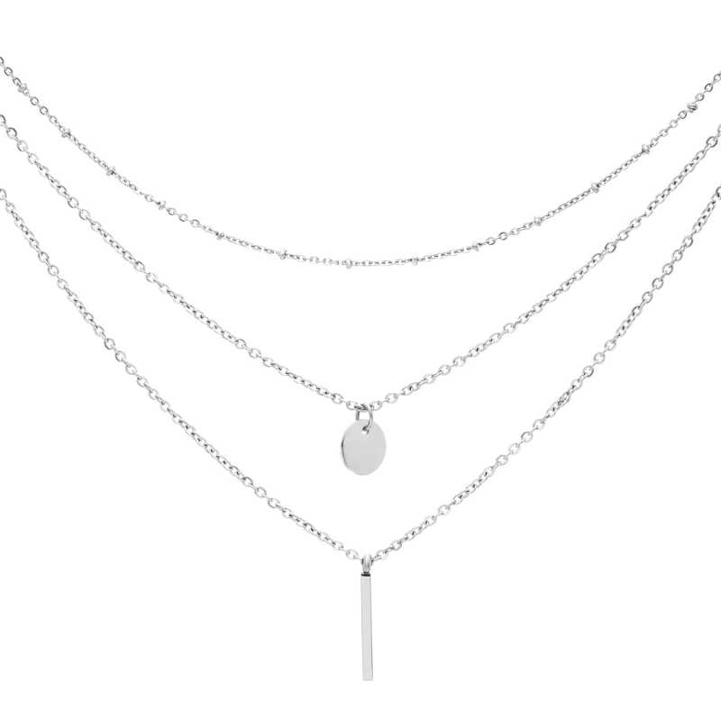 Trojitý ocelový náhrdelník značky Troli představuje harmonii elegance a moderního designu. Skládá se ze tří jemných řetízků, přičemž první je zdobený drobnými korálky, zatímco druhý a třetí nesou stylové přívěsky. Průměr kruhového přívěsku činí 1 cm a rozměr tyčinky je 2 x 0, 2 cm, což dodává šperku jedinečný a sofistikovaný vzhled. Náhrdelník lze pohodlně nastavit na délku od 33, 5 cm s možností prodloužení až o 5 cm. Vyroben z kvalitní oceli, je odolný a vhodný pro každodenní nošení. Tento šperk nejen zdobí, ale také symbolizuje ženskou sílu a eleganci. Dodáván je v originálním balení, což z něj činí skvělý dárek pro jakoukoli příležitost.