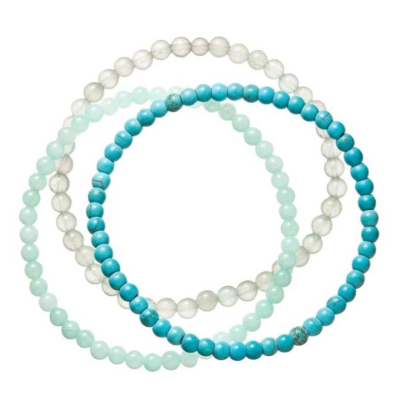 Set náramků z minerálních kamenů 43043. 3 tyrkys vyniká svým jedinečným designem, který spojuje přírodní krásu a pozitivní energii. Tento elegantní set, složený z avanturínu, howlitu a amazonitu, přináší do vašeho života harmonii a klid. Délka náramků dosahuje 19 cm a korálky o průměru 0, 4 cm se jemně kouzlí ve světle zelené, modré a tyrkysové barvě. Avanturín podporuje odvahu a přitahuje štěstí, howlit přináší klid a trpělivost, zatímco amazonit posiluje rovnováhu a uvolňuje stres. Tento set je ideálním dárkem pro milovníky přírodních materiálů a dodává šmrnc každému outfitu. Dodává se v elegantním balení, což z něj činí perfektní volbu pro zvláštní příležitosti.