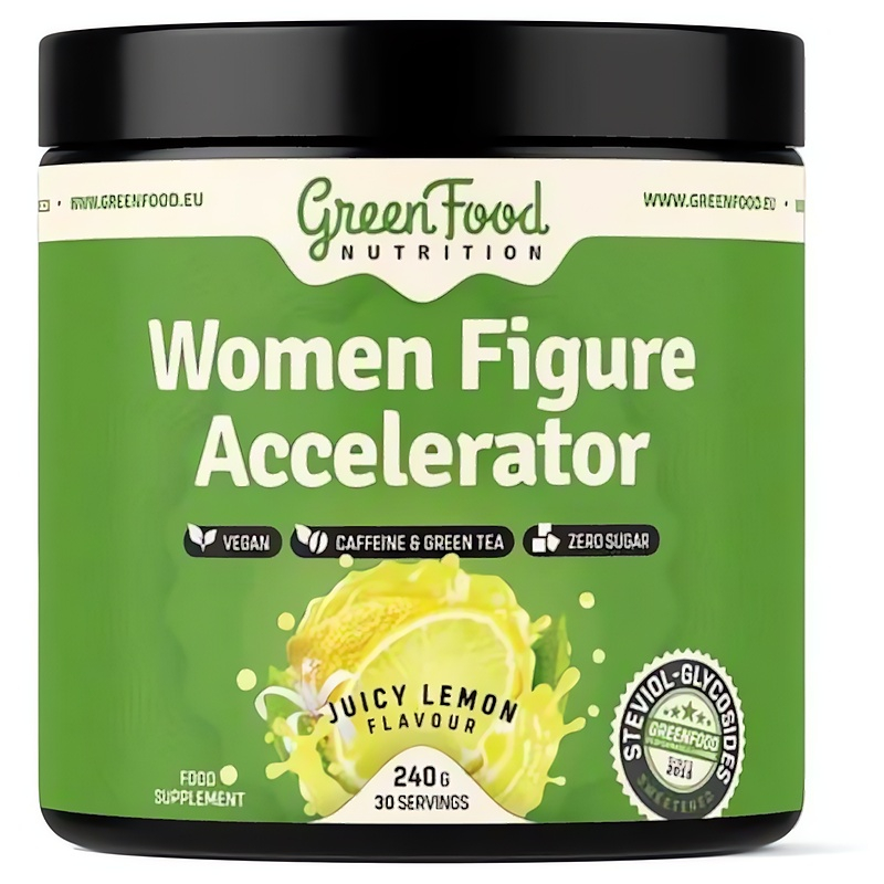 Women Figure Accelerator je prémiový práškový doplněk stravy určený pro aktivní ženy, který podporuje metabolické procesy a vitalitu. Obsahuje pečlivě vybrané složky jako L-karnitin, L-tyrosin, beta-alanin a extrakty ze zeleného čaje, bílé vrby, zázvoru a hořkého pomeranče. Tyto ingredience synergicky přispívají k optimalizaci energie a podpoře výkonu během cvičení. Díky přítomnosti kofeinu a extraktu černého pepře zajišťuje zvýšenou bdělost a efektivní vstřebávání živin. Doplněk je ideální pro ženy, které chtějí podpořit svůj aktivní životní styl a zlepšit využívání tukových zásob.