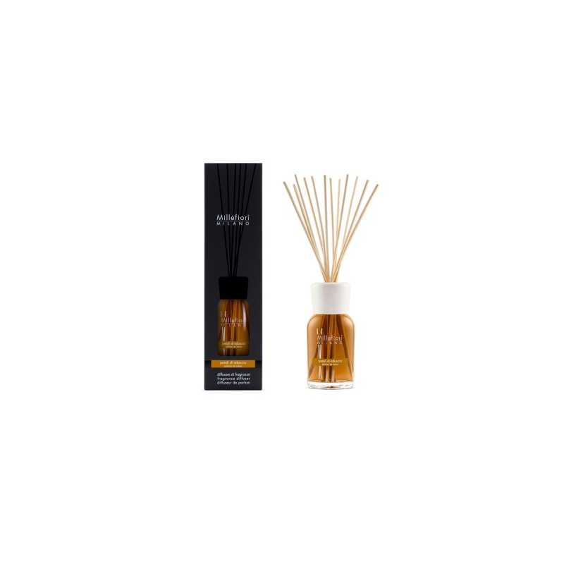 Aroma difuzér Millefiori Milano Fragrance Diffuser Petali di Tabacco o objemu 500 ml přináší do vašeho domova jedinečnou sladkou vůni, která evokuje atmosféru elegance a pohodlí. Složení zahrnuje tabákové listy, koření, vanilku a kakao, což vytváří harmonickou kombinaci, jež potěší všechny smysly. Tento unisex difuzér je ideální pro relaxaci při večerním posezení nebo klidném čtení. Díky ratanovým tyčinkám se vůně postupně uvolňuje a zajišťuje dlouhotrvající zážitek. Estetický design difuzéru skvěle doplní jakýkoliv interiér, zatímco bezpečné použití bez plamene přináší klid do vašeho domova.