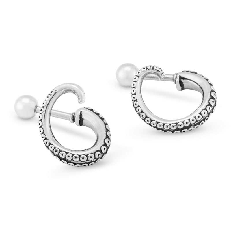 Pánské náušnice Chapadlo KS-153 od značky Troli přinášejí do vašeho stylu jedinečný prvek. Vyrobené z kvalitní oceli, tyto náušnice v neobvyklém tvaru chapadla chobotnice okamžitě upoutají pozornost. Každé chapadlo se asymetricky kroutí, což dodává šperkům dynamiku a osobitost. Bezpečné zapínání na šroubek v podobě kuličky umožňuje variabilní nošení, ať už zepředu, nebo zezadu lalůčku. Ideální volba pro muže, kteří se nebojí vyjádřit svou individualitu. S váhou pouhých 7 g a lesklým stříbrným povrchem se náušnice pohodlně nosí a snadno kombinují s různými outfity. Elegantní balení dělá z těchto šperků skvělý dárek.