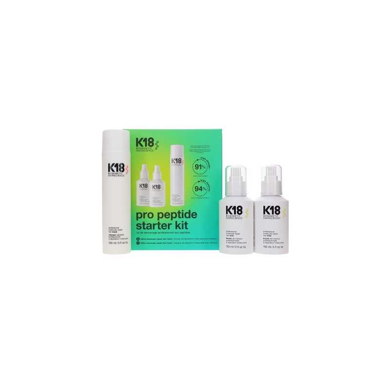 K18 Pro Peptide Starter Kit 3 x 150 ml je ideálním řešením pro obnovu poškozených a suchých vlasů. Tato revoluční sada obsahuje tři produkty, které využívají pokročilé peptidové technologie pro regeneraci vlasové struktury. Peptidy, aminokyseliny a keratin společně posilují vlasy, zajišťují potřebnou hydrataci a chrání je před dalším poškozením. Sada je vhodná pro všechny typy vlasů, zejména pro ty, které byly vystaveny chemickému ošetření nebo častému tepelnému stylingu. Aplikujte na umyté vlasy, nechte působit a opláchněte. Užívejte si zdravé a silné vlasy každý den.
