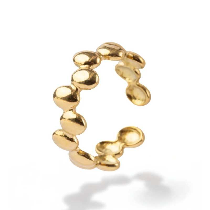 Otevřený prsten Éclat od značky Marc Malone kombinuje moderní design s nadčasovou elegancí. Vyroben z kvalitní oceli s luxusním zlatým PVD povlakem, jeho hladký povrch odráží světlo a přitahuje pozornost. Prsten je tvořen sérií dokonale zaoblených oblázků, což mu dodává jedinečný charakter a sofistikovanost. Díky otevřenému provedení je snadné přizpůsobit velikost prstenu podle potřeby, což zajišťuje maximální pohodlí. Tento šperk symbolizuje ženskou sílu a individualitu, ideální volba pro každodenní nošení nebo speciální příležitosti. V originálním balení se stává skvělým dárkem pro sebe nebo blízké.