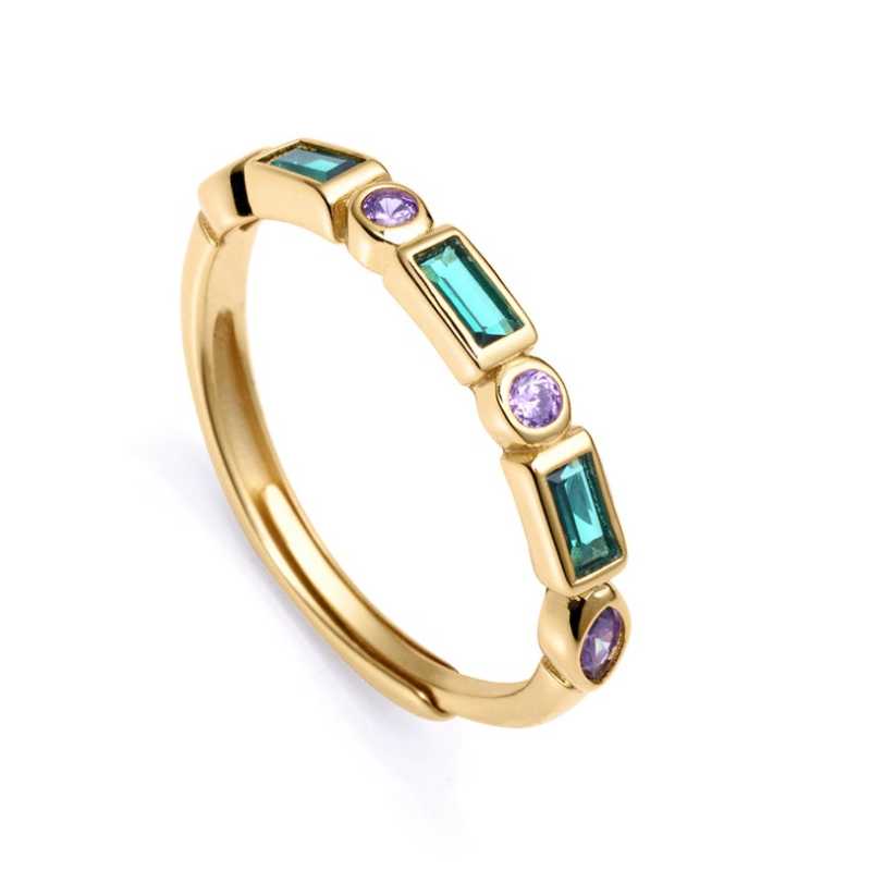 Tento překrásný pozlacený prsten se zirkony od značky Viceroy přináší do Vašeho šperkovnice dotek elegance a luxusu. Vyrobený ze sterlingového stříbra a pokrytý žlutým zlatem, zajišťuje nejen atraktivní vzhled, ale také odolnost a dlouhověkost. Broušené zirkony v nádherných odstínech zelené a fialové barvy dodávají šperku jedinečný šarm a výjimečnost, která nezůstane bez povšimnutí. Otevřený design prstenu nabízí pohodlné nošení a variabilitu. Tento šperk je ideální volbou pro ženy, které chtějí vyniknout na každé události. Dodává se v originálním balení, což z něj činí skvělý dárek pro blízkou osobu.