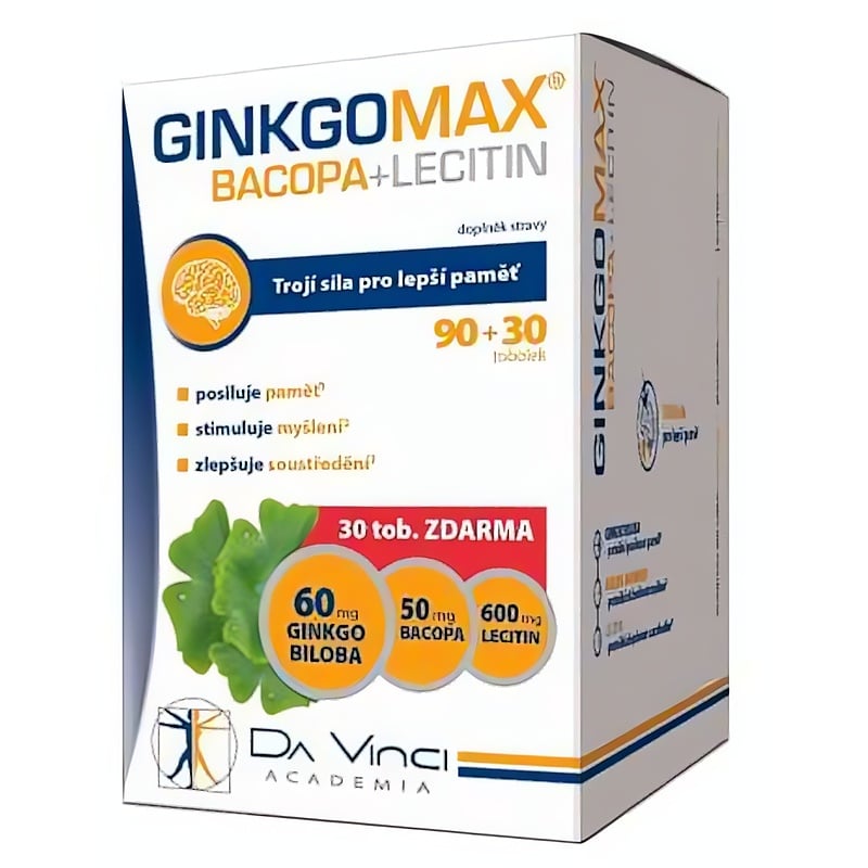 GinkgoMAX + Bacopa + Lecitin je vysoce kvalitní doplněk stravy ve formě tobolek, který podporuje kognitivní funkce a duševní výkonnost. Obsahuje standardizovaný extrakt z Ginkgo Biloby, který přispívá k normální činnosti mozku a mikrocirkulaci. Lecitin, bohatý na fosfolipidy, podporuje paměť a kognitivní schopnosti, zatímco Bacopa monnieri je známá pro své pozitivní účinky na koncentraci a paměť. Doporučené dávkování je jedna tobolka denně po jídle. Tento produkt je ideální pro každého, kdo chce podpořit svou duševní pohodu a výkonnost. Užívejte zodpovědně a konzultujte s lékařem v případě užívání léků.