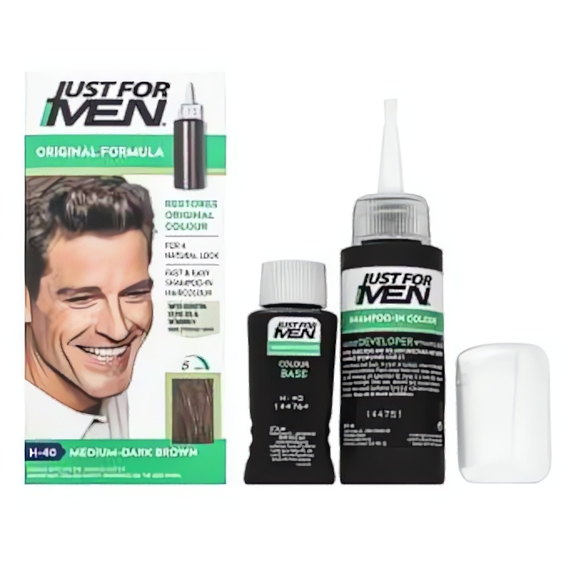 Just For Men Shampoo-in Haircolour H40 Medium Dark Brown je ideálním řešením pro muže, kteří chtějí rychle a efektivně zakrýt šediny. Tento barevný šampon nabízí přirozený vzhled a dlouhotrvající efekt, což oceníte zejména při hektickém životním stylu. Složení obohacené o Aloe Vera, keratin a vitamin E zajišťuje nejen krytí šedin, ale také posiluje vlasy a chrání je před poškozením. Aplikace je jednoduchá – stačí nanést na mokré vlasy a nechat působit několik minut. Just For Men je synonymem pro kvalitní pánskou vlasovou kosmetiku, která přináší snadná a účinná řešení pro každodenní péči. Vhodné pro všechny typy vlasů.