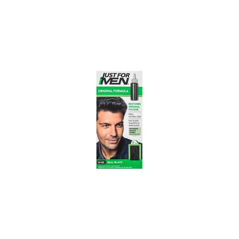Just For Men Shampoo-in Haircolour H55 Natural Real Black je ideálním řešením pro muže, kteří chtějí snadno a rychle zakrýt šediny a dodat svým vlasům přirozený černý odstín. Tento barevný šampon kombinuje intenzivní barvicí pigmenty s kondicionačními a hydratačními složkami, které zajišťují zdravý a lesklý vzhled vlasů. Aplikace je jednoduchá a rychlá, což oceníte při hektickém životním stylu. Výsledky přetrvávají až několik týdnů, takže se můžete spolehnout na dlouhotrvající efekt. Just For Men je značka zaměřená na potřeby mužské vlasové kosmetiky, a tento šampon je skvělou volbou pro všechny typy vlasů.