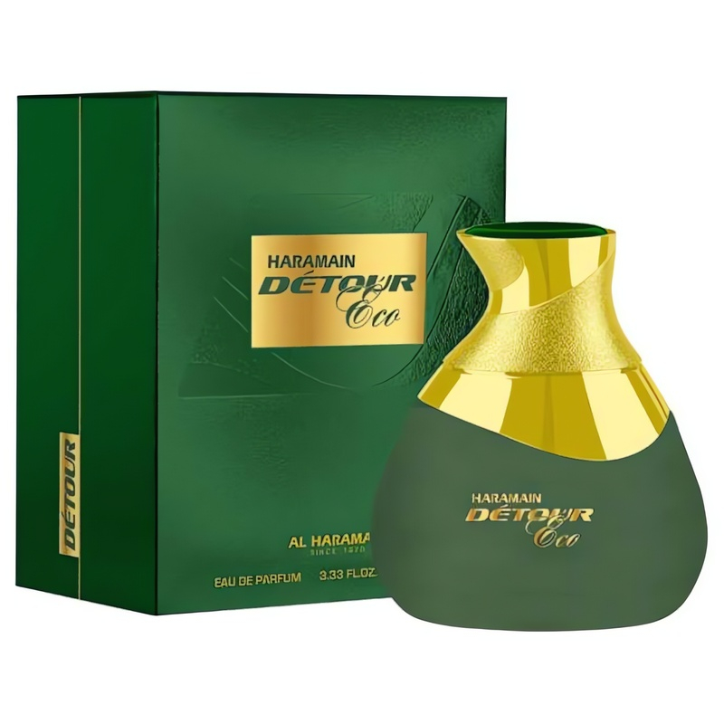 Detour Eco od značky Al Haramain je příběhem, který spojuje přírodu s elegancí. Vznikla jako oslava harmonického soužití s okolním světem. Otevírá se svěžími akordy muškátové šalvěje, levandule a bergamotu, vyvolávajícími vzpomínky na ranní zahrady po dešti. V srdci vůně se ukrývá překvapení v podobě šafránu a sladkých pralinek, které vytvářejí kontrast mezi teplými, zemitými tóny a smyslnou sladkostí. Na závěr voní hlubokým agarovým dřevem a cedrem, evokující atmosféru klidu. Detour Eco je ideální volbou pro ty, kteří touží po luxusu s respektem k přírodě. Flakon, inspirovaný přírodními tvary, odráží vnitřní krásu obsahu a jeho ekologický přístup.