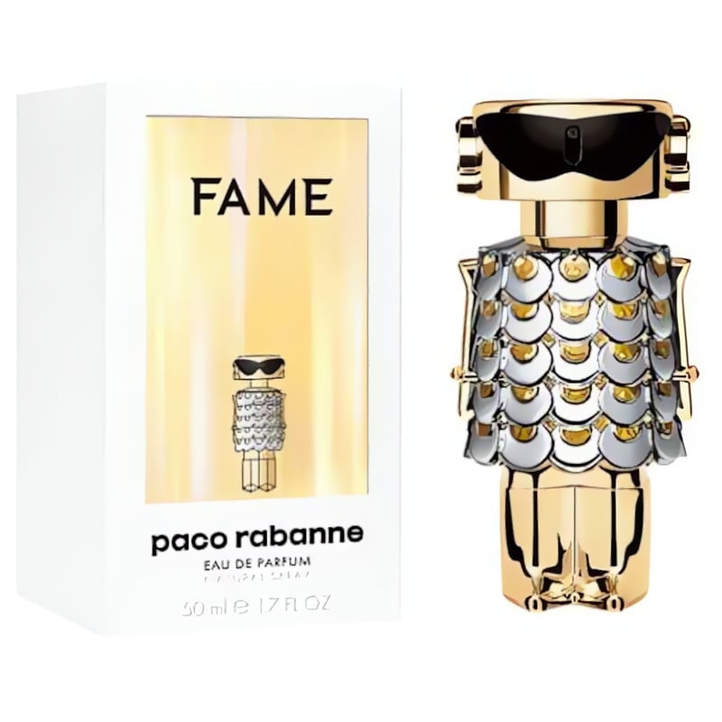 Fame od RABANNE je vůní, která v sobě nese ducha moderní Paříže a oslavuje novou éru ženskosti. Tento parfém, zrozený z vášně pro avantgardní luxus, kombinuje osvěžující bergamot a šťavnaté mango s čistým jasmínem a smyslným krémovým kadidlem. V jeho základu se spojují jemné tóny santalového dřeva a vanilky, jež vytvářejí nezaměnitelný pocit elegance. Flakon, inspirovaný okouzlujícími 60. lety, v sobě odráží moderní design v lesklých stříbrných a zlatých odstínech, přitahující pozornost mladší generace. Vůně Fame byla uvedena na trh v roce 2022 a nabízí nejen nezapomenutelný zážitek, ale také možnost opakovaného plnění, což podtrhuje její ekologickou hodnotu. Oslovuje ženy, které touží po unikátním vyjádření své osobnosti.