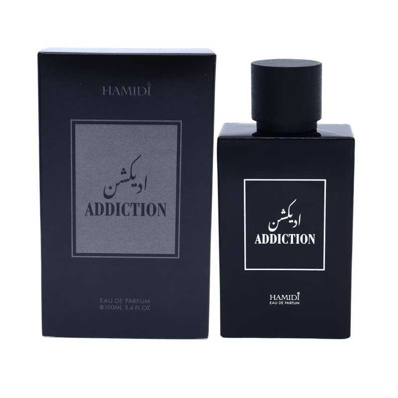 Hamidi Addiction je parfémovaná voda, která vzbuzuje smyslnou touhu a evokuje orientální kouzlo. Otevírá se svůdnou kombinací kouře a svěžích zelených tónů, které okamžitě vtáhnou do tajemného světa. V srdci se ukrývá bohatství dřevitých tónů, pryskyřice, tabáku a kávy, jež dodávají této vůni hřejivou hloubku. Základní tóny agarového dřeva a kadidla posilují orientální charakter a zajišťují dlouhotrvající efekt. Značka Hamidi, známá svou kvalitou a uměleckým zpracováním, přináší vůni, která zanechá nezapomenutelný dojem. Lze ji srovnat s tajemnými a smyslnými parfémy, které okouzlují na první přivonění.