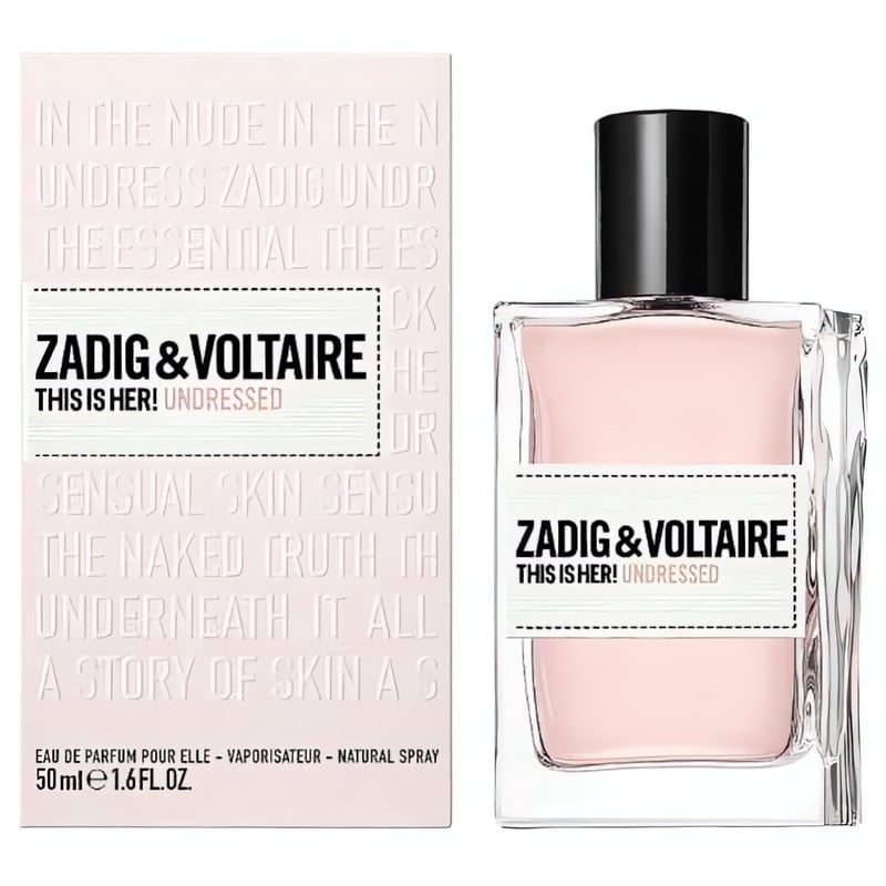 Vůně This Is Her! Undressed od značky Zadig & Voltaire je oslavou ženské jedinečnosti a odvahy. Vznikla pod rukama talentované parfumérky Sidonie Lancesseur, která spojila pikantní zázvor s jemností květu pomerančovníku, čímž vytvořila harmonii mezi sílou a něhou. Tato veganská parfémová voda, uvedená na trh v roce 2023, přináší smyslné akordy kůže a sůl, které evokují nezapomenutelné okamžiky. Flakon, jednoduchý a elegantní, symbolizuje čistotu a sofistikovanost. Tato vůně, určená pro výjimečné ženy, je výrazem osobitého stylu a odvahy být sebou samou.