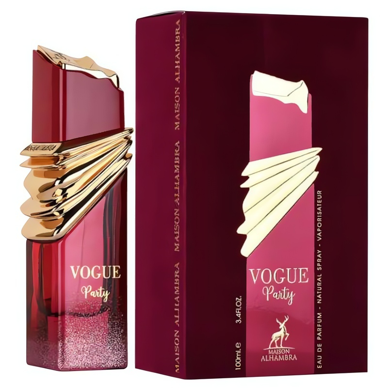 Vogue Party od značky ALHAMBRA je parfémovaná voda, jejíž orientálně-květinové pojetí osloví každou ženu toužící po nezapomenutelném dojmu. Úvodní tóny sladké mandle a šťavnaté třešně Vás okamžitě pohltí svou energií. V srdci se rozvinou jemné květinové akordy lilie a osvěžující růžové vody, které doplňuje pižmový nádech semínek ambrette. Základ vůně tvoří harmonická směs hřejivé fazole tonka, vanilky, vetiveru a dubového mechu, jež na pokožce zanechává podmanivou stopu. Vůně, inspirovaná arabskou tradicí, je ideální pro denní nošení i večerní oslavy.