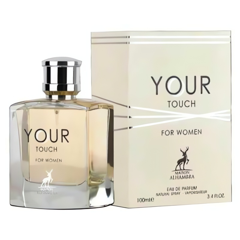 Vůně Your Touch For Women je oslavou ženskosti, která se projevuje v harmonické kombinaci sladkých a ovocných tónů. Úvodní akordy citronu a pomeranče, obohacené šťavnatou malinou, přinášejí svěžest a energii. Jakmile se vůně rozvine, do popředí vystupuje opojná růže, jejíž květinové srdce dodává celé kompozici smyslnost a hloubku. Základ, tvořený ambrovým dřevem, pižmem a vanilkou, pak vytváří hřejivou a příjemně ženskou esenci, která zanechává trvalý dojem. Tento parfém, inspirovaný arabskou a orientální tradicí, je ztělesněním kvality značky ALHAMBRA, jež dbá na přírodní složky a jejich vzájemnou harmonii.