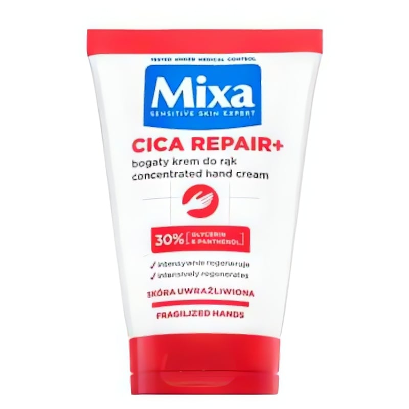Naneste malé množství krému na čisté a suché ruce. Jemně vmasírujte, dokud se krém zcela nevstřebá. Mixa Cica Repair je vhodný pro každodenní použití, zejména po umytí rukou nebo kdykoli, když cítíte potřebu hydratace.