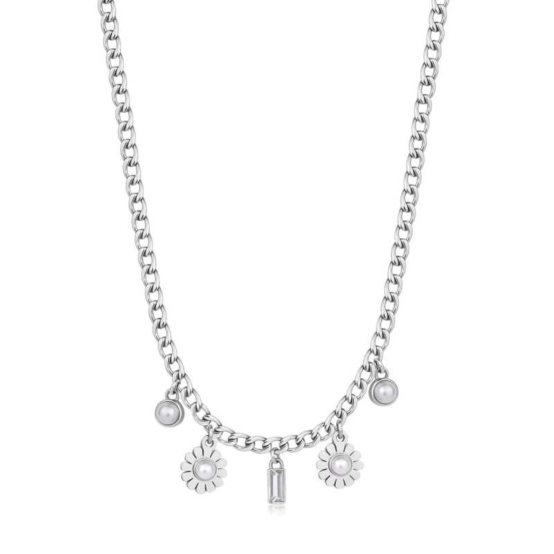Hravý ocelový náhrdelník s přívěsky od italské značky S'Agapõ nese v sobě unikátní design, který okouzlí na první pohled. Délka 42 cm a lehká konstrukce z kvalitní oceli zajišťují pohodlné nošení. Ozdobený jemnými přívěsky se syntetickými perličkami a čirým krystalem, tento náhrdelník symbolizuje elegance a ženskost. Hlavním motivem jsou květiny, které podtrhují jeho romantický charakter. Tento stylový šperk nejenže zvýrazní váš dekolt, ale také dodá každému outfitu šmrnc. Originální balení podtrhuje kvalitu a exkluzivitu produktu, který je ideální volbou pro každou příležitost.