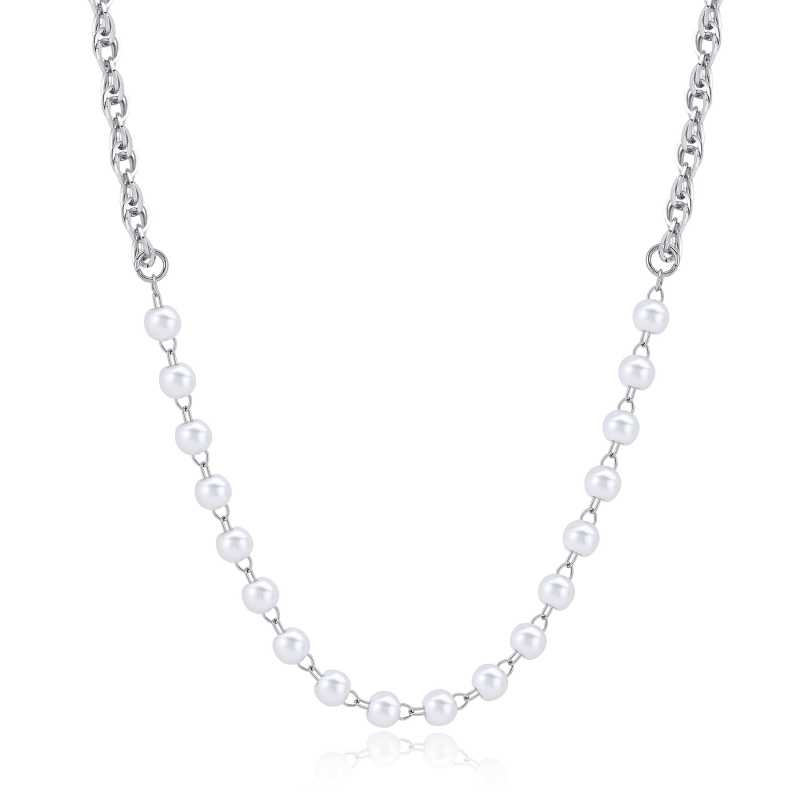 Elegantní náhrdelník s perlami Chunky od italské značky S'Agapõ přináší do vašeho šperkovníku nádech luxusu. Vyroben z kvalitní oceli, tento náhrdelník s délkou 46 cm je skvělým doplňkem pro každou příležitost. Půvabné syntetické perly v bílých a perleťových odstínech dodávají šperku jedinečný šarm, zatímco lesklý povrch podtrhuje jeho eleganci. Zapínání na karabinku zajišťuje pohodlné nošení a bezpečnost. Tento šperk je ideálním dárkem pro ženy, které ocení spojení moderního designu a klasické elegance. Objevte kouzlo perlových šperků a nechte se okouzlit!
