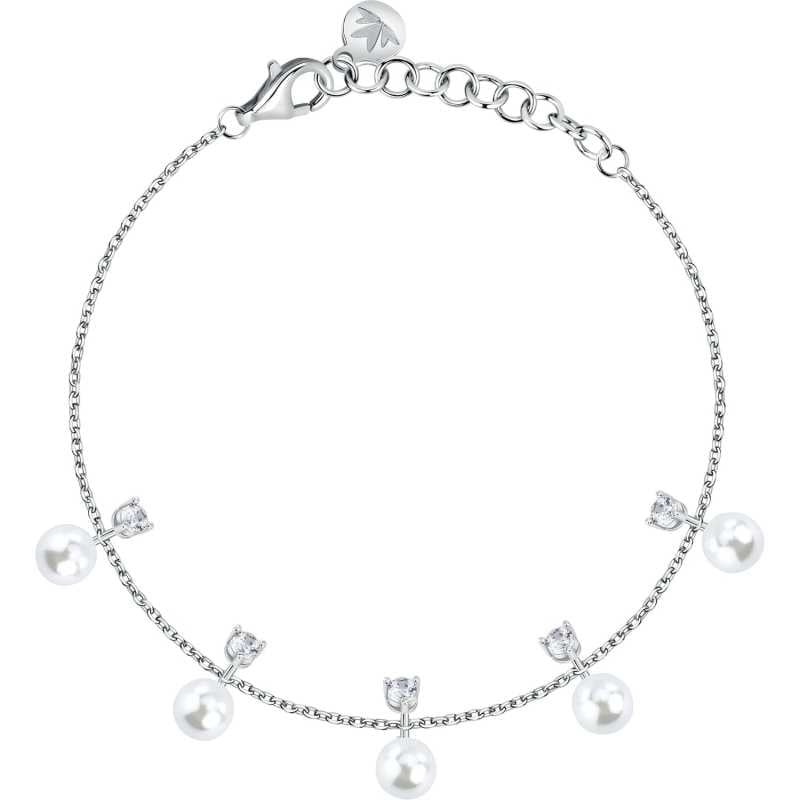 Náramek Perla SAWM04 od italské značky Morellato v sobě snoubí eleganci a jemnost. Tento stříbrný šperk s rhodiovaným povrchem zajišťuje nejen dlouhotrvající lesk, ale také minimální riziko alergických reakcí. Dekoraci tvoří pravé sladkovodní perly a oslnivé kubické zirkony, které společně vytváří harmonický design. Náramek s možností nastavení délky až do 19 cm se díky zapínání na karabinku snadno přizpůsobí každému zápěstí. Tento výjimečný kousek symbolizuje ladnost a ženskost, a stane se tak ideálním doplňkem pro každou příležitost. V originálním balení se stává skvělým dárkem pro vaše blízké.