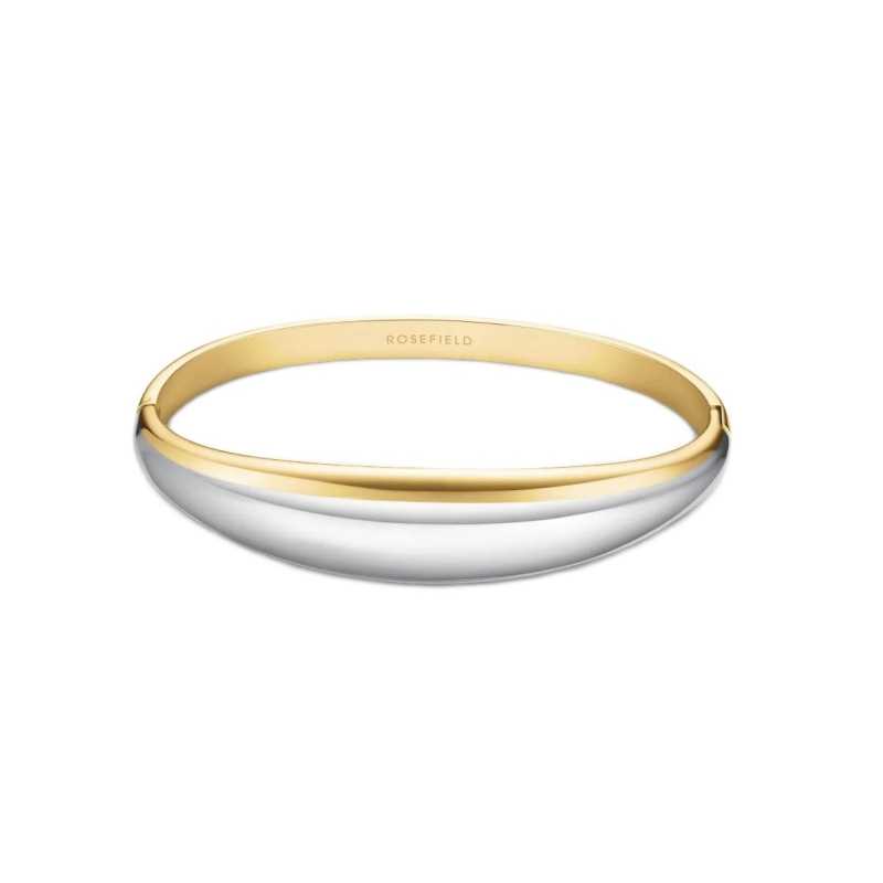 Elegantní bicolor náramek Dome od značky Rosefield je dokonalým spojením moderního designu a nadčasového stylu. Vyroben z kvalitní oceli a částečně pozlacený 14karátovým žlutým zlatem, zaujme jemnými křivkami a pevnou konstrukcí. Tento náramek symbolizuje sílu a eleganci, ideálně doplní nejen každodenní outfit, ale i slavnostnější příležitosti. Jeho minimalistický design bez kamínků se snadno kombinuje s jinými šperky, což z něj činí univerzální kousek do vašeho šperkovnice. Dodáván v originálním balení, je vhodný jako skvělý dárek pro každou ženu.