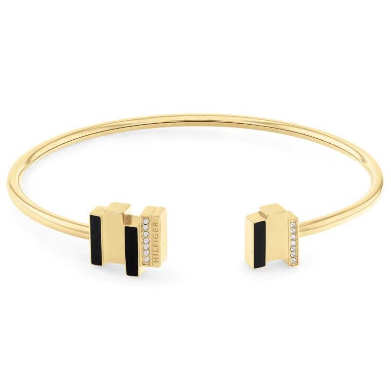 Elegantní otevřený náramek od značky Tommy Hilfiger spojuje moderní design s nadčasovou elegancí. Vyrobený z kvalitní oceli a pozlacený žlutým zlatem, náramek se pyšní nádherným třpytem čirých broušených krystalů, které dodávají šperku jedinečný šarm. Dekorativní černý smalt na koncích náramku umocňuje jeho sofistikovaný vzhled. Díky rozměrům 6 x 5 cm se skvěle přizpůsobí vašemu zápěstí a stane se oblíbeným doplňkem každého outfitu. Ozdobte se tímto stylovým šperkem, který podtrhne vaši osobnost a dodá vám sebevědomí. Náramek je dodáván v originálním balení, ideálním jako dárek.
