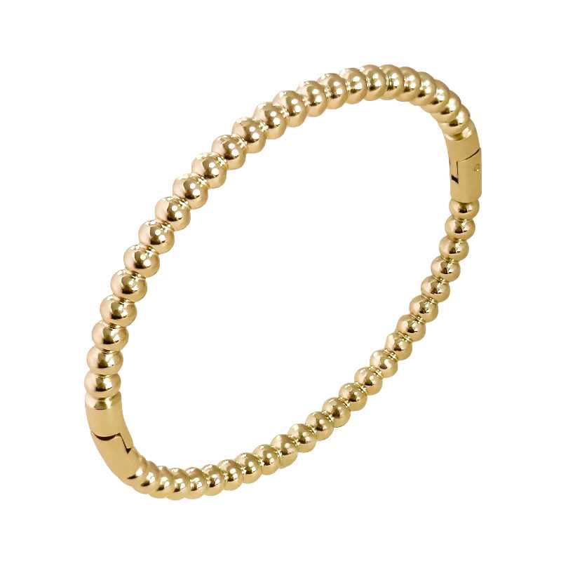 Pevný kuličkový náramek z pozlacené oceli od značky Troli je skvělým příkladem moderního minimalistického designu. Jeho elegantní kuličkový vzor dodává šperku svěží nádech, zatímco zlatý PVD povlak zajišťuje dlouhotrvající lesk a kvalitu. Tento náramek, s rozměry 6, 7 x 5, 7 cm, se snadno navléká díky praktické sponě. Symbolizuje spojení elegance a nadčasovosti, což z něj činí ideální doplněk pro každou příležitost. Ozdobte své zápěstí tímto stylovým šperkem a vyjádřete svůj osobní styl s nádechem luxusu. Dodáván je v originálním balení, což z něj činí skvělý dárek.