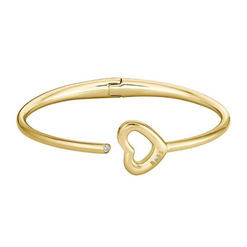 Pevný pozlacený náramek se srdcem Honey Boundless značky HUGO BOSS je vyroben z vysoce kvalitní oceli, která zaručuje dlouhou životnost a odolnost. Povrch náramku je chráněn zlatým PVD povlakem, jenž mu dodává elegantní vzhled a lesk, zatímco chrání proti poškrábání a opotřebení. Jemné osazení čirými krystalky podtrhuje romantický design ve tvaru srdce, což činí tento šperk ideálním doplňkem pro každou příležitost. Pro udržení jeho krásy je doporučeno náramek uchovávat v originálním balení a vyhýbat se kontaktu s vodou či chemikáliemi. S tímto šperkem získáte nejen stylový kousek, ale také kvalitní výrobek s tradicí značky HUGO BOSS.