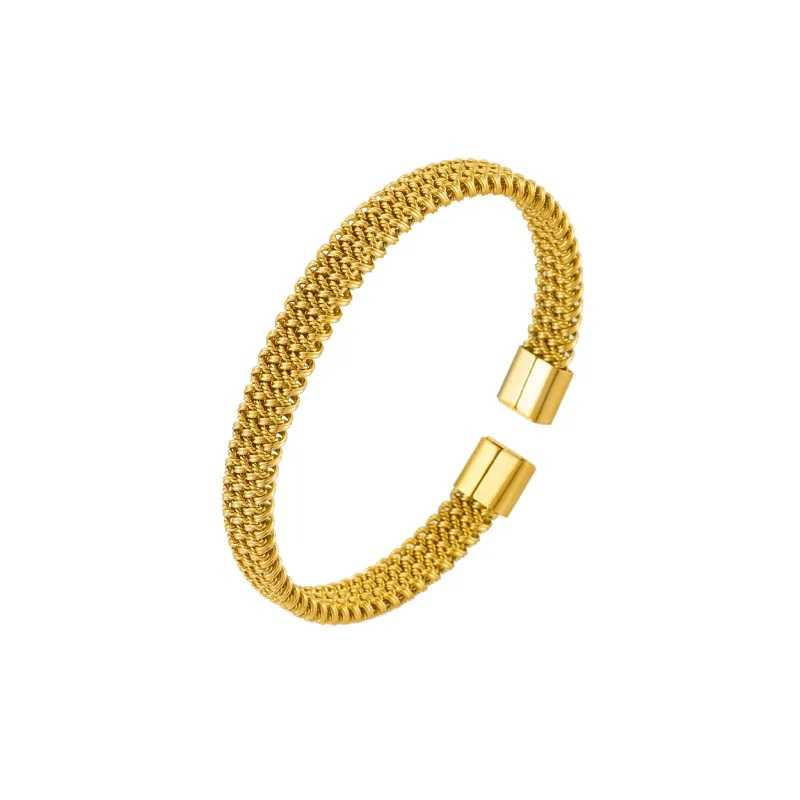 Tento slušivý náramek z pozlacené oceli od značky Troli je dokonalým doplňkem pro každou ženu, která se nebojí ukázat svůj styl. Jeho otevřené provedení a pletený design vytváří moderní, a přitom nadčasový vzhled, který osvěží jakýkoli outfit. Náramek se snadno navléká a na ruce působí velmi elegantně, což z něj činí ideální volbu pro každou příležitost. Pozlacený povrch dodává šperku luxusní nádech, zatímco kvalitní ocel zajišťuje dlouhou životnost. Tento šperk je skvělým symbolem elegance a vkusného vkusu, který potěší každou ženu, jež si potrpí na detail.