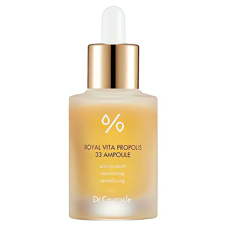 Pleťové sérum Royal Vita Propolis 33 od značky Dr.Ceuracle představuje dokonalou volbu pro revitalizaci unavené pleti. S 33% obsahem propolisového extraktu a mateří kašičky poskytuje intenzivní výživu a ochranu. Propolis okamžitě revitalizuje pleť, zatímco mateří kašička chrání před volnými radikály a zvyšuje její pružnost. Toto sérum nejenže zpevňuje a zpevňuje pleť, ale také sjednocuje její tón a dodává zdravý, zářivý vzhled. Použití je jednoduché: stačí nanést 2–3 kapky na čistou pleť a jemně vklepat. Dopřejte své pleti péči, kterou si zaslouží.