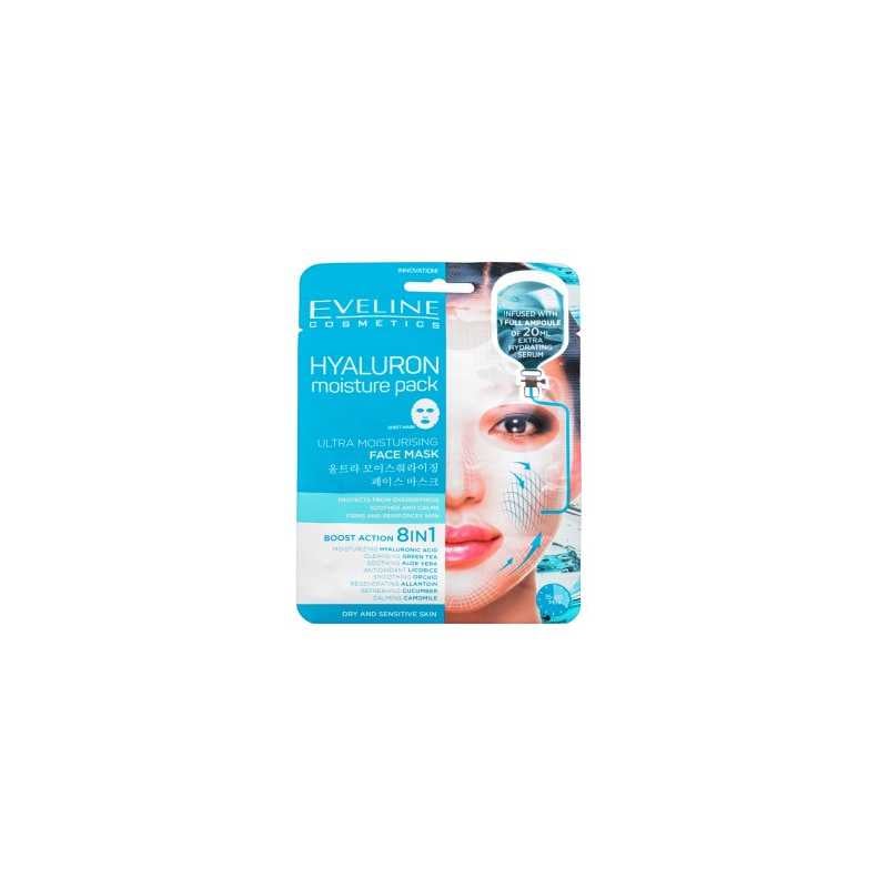 Eveline Hyaluron Moisture Pack Ultra Moisturising Face Mask je ideálním řešením pro všechny typy pleti, které potřebují okamžitou hydrataci a regeneraci. Tato plátýnková maska, vyrobená renomovanou značkou Eveline, se snadno přizpůsobí konturám obličeje a zajišťuje rovnoměrné vstřebávání aktivních látek. Obsahuje kyselinu hyaluronovou, která intenzivně hydratuje a vyplňuje pleť, aloe vera pro zklidnění a panthenol, jenž podporuje obnovu kožních buněk. Po aplikaci se pleť stává jemnější, zdravější a zářivější. Ideální pro rychlou vzpruhu před důležitou událostí nebo jako součást relaxačního večera. Dopřejte své pleti péči, kterou si zaslouží.