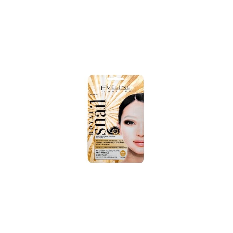 Eveline Royal Snail Intensely Regenerating Anti-Wrinkle Sheet Mask je ideálním řešením pro všechny typy pleti, které potřebují intenzivní regeneraci a hydrataci. Tato vyživující maska, obohacená o šnečí extrakt, kyselinu hyaluronovou a kolagen, proniká hluboko do pokožky a obnovuje její strukturu. Díky svému unikátnímu složení zajišťuje dlouhodobou hydrataci, vyhlazuje jemné linie a vrásky, čímž přispívá k mladistvému vzhledu pleti. Použití je snadné – stačí aplikovat na čistou pleť a nechat působit 15-20 minut. Pravidelným používáním se pleť stává jemnější, pružnější a zdravější. Dopřejte si luxusní péči, kterou si zasloužíte.